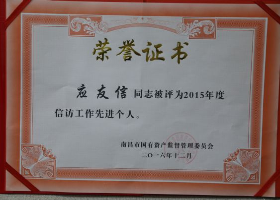 2016年12月,市二建公司榮獲市國資委頒發(fā)的兩項榮譽(yù)——綜治工作先進(jìn)單位、信訪(fǎng)工作先進(jìn)單位。分管該項工作的領(lǐng)導、成員等三人同時(shí)被授予先進(jìn)個(gè)人,成績(jì)的取得原自于市國資委的正確領(lǐng)導,更離不開(kāi)單位和工作人員的辛勤努力。