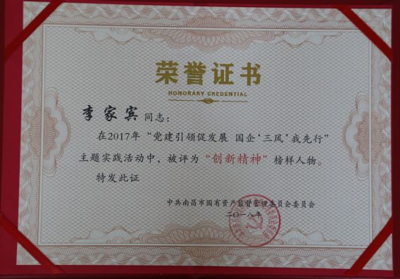在2017年度國資委組織的“黨建引領(lǐng)促發(fā)展 國企“三風(fēng)”我先行”主題實(shí)踐活動(dòng)中,陳國明同志被評為“優(yōu)秀工作者”,李家兵同志被評為“創(chuàng )新精神”榜樣人物,徐棽同志被評為“工匠精神”榜樣人物。