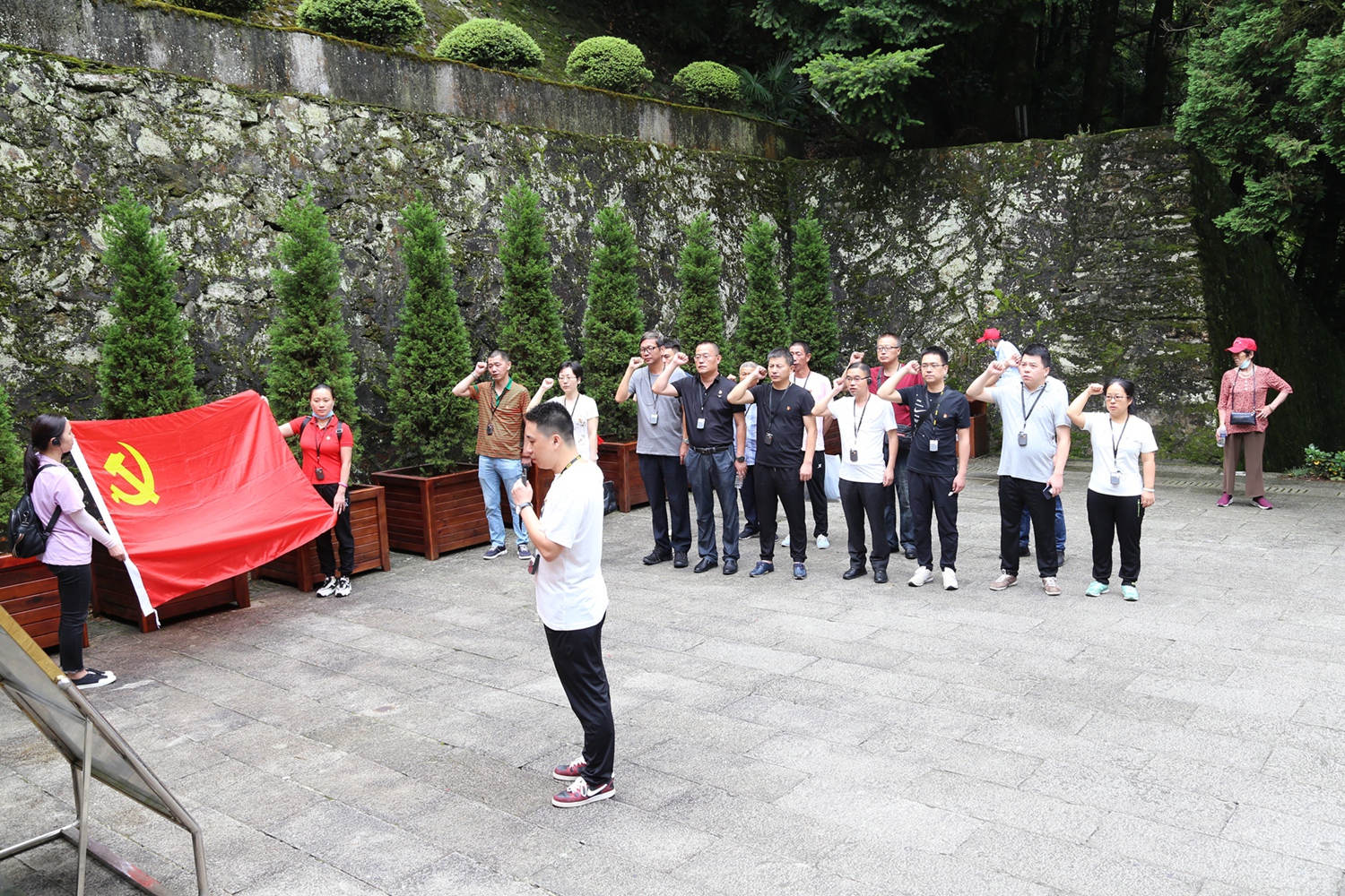 培訓班以理論加現場(chǎng)教學(xué)的形式,組織參拜了北山烈士陵園,向4萬(wàn)多名長(cháng)眠在這里的革命英烈敬獻了花圈。學(xué)員們懷著(zhù)激動(dòng)莊嚴的情素,在烈士圣地舉行了入黨宣誓儀式,藍天白云下廻蕩著(zhù)學(xué)員們對黨立下的錚錚誓言。