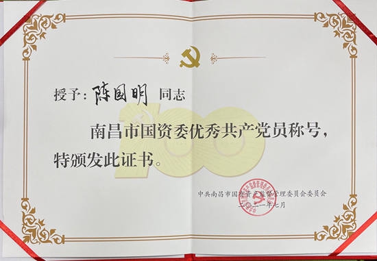 在隆重紀念中國共產(chǎn)黨成立100周年之際,南昌市國資委和南昌旅游集團于近日對一批來(lái)自各條工作戰線(xiàn)上的優(yōu)秀黨員和優(yōu)秀黨務(wù)工作者及先進(jìn)基層黨組織進(jìn)行了表彰,獎勵他(她)們在各自的工作崗位上履職盡責創(chuàng )先進(jìn)、立足崗位爭優(yōu)秀,在推動(dòng)企業(yè)高質(zhì)量發(fā)展中充分發(fā)揮戰斗堡壘和先鋒模范作用。其中,公司陳國明同志榮獲市國資委“優(yōu)秀共產(chǎn)黨員”稱(chēng)號,公司黨委被評為南旅集團“先進(jìn)基層黨組織”,黨員職工胡穎明、徐小蘭、王昕、王貞同志獲南旅集團“優(yōu)秀共產(chǎn)黨員”稱(chēng)號。